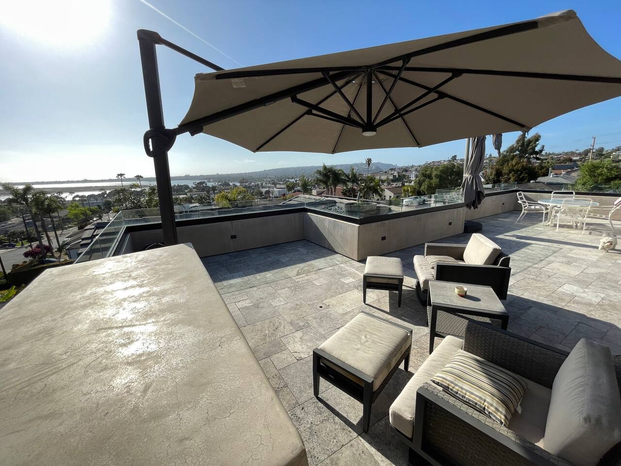 SLEEPING ARRANGEMENTS - Bedroom 1: 1 king bed - Bedroom 2: 1 queen bed - Bedroom 3: 1 queen bed - Bedroom 4: 1 queen bed - Bedroom 5: 1 queen bunk bed - Bedroom 6: 1 queen bed KITCHEN - 8-burner gas wolf range stove, refrigerator, microwave, dishwasher - Eat-in breakfast bar, large kitchen island, wraparound counters - Drip coffee maker, toaster, blender, spices - Cooking basics, dishware & flatware INDOOR LIVING - 5 flat-screen TVs w/ Netflix, Hulu, Amazon Prime - 16 Zone Surround Sound system - Contemporary furnishings - Interior bay & ocean views, ample natural light - Formal dining table, multiple living rooms, books, board games - Private Home Gym with state of the art equipment STEP OUTSIDE - Furnished patio w/ 2 gas fire pits - Poolside Grill/Bar Outdoor Kitchen - Private pool, hot tub, landscape lights (Pool heated up to 70 and Jacuzzi to 104 is included) - Rooftop deck with panoramic ocean & bay views, outdoor dining table - Pingpong & coastline views GENERAL - Central heating & A/C - Washer/dryer & iron/board - Linens/towels, complimentary toiletries - Free WiFi - Keyless entry PARKING - Garage (3 vehicles) - Ample street parking Guest access Guests will have access to the entire property via keyless entry Other things to note - No smoking inside - No events, gatherings or large parties - Must be at least 25 years old to book - Additional fees and taxes may apply - All travelers 18+ must present clear photo IDs with all information shown prior to check-in. The homeowner will check them and verify them before any guest enters the home. ADDITIONAL INFORMATION - Pool can be heated up to 85 and is $200 per day - An early check In or late checkout will be charged an extra $50 per hour - Your safety matters. This property features exterior surveillance cameras. These devices may be recording activity for your safety, but should not infringe on your privacy - Mid-stay cleaning services can be arranged upon request - To ensure this property continues providing the highest level of guest service and safety, the cleaning team is taking extra measures to thoroughly and effectively clean the property between each stay with an EPA-registered disinfectant 📍 Location: Centrally located just minutes from: - Mission Bay - SeaWorld - La Jolla - Beaches - Downtown San Diego & Gaslamp Quarter - San Diego Zoo - MTS Trolley station (<1 mile away) for easy access to Petco Park, Snapdragon Stadium, UCSD, SDSU and more