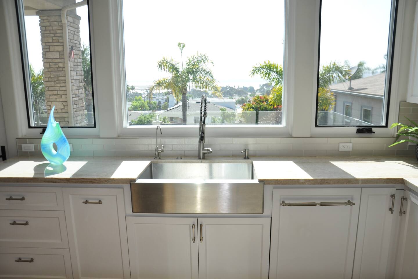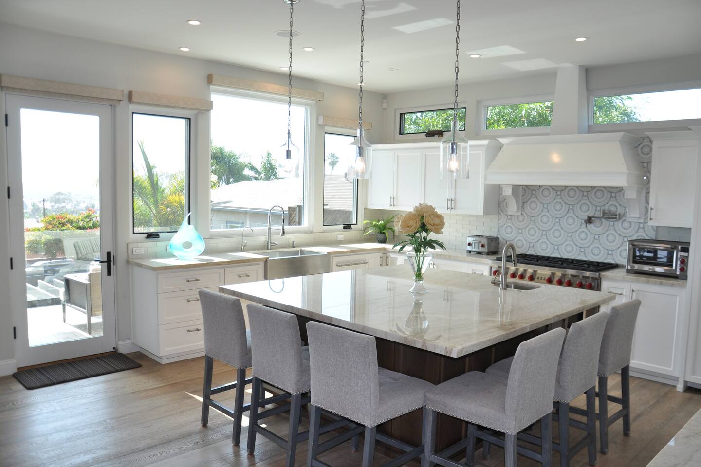 Gourmet Kitchen | 3,500 Sq Ft | Panoramic Bay & Ocean Views Breathtaking views, luxurious finishes, and an outdoor Pool/spa are just some features you'll enjoy at this newly constructed Mission Bay home! Floor-to-ceiling windows provide ocean views that fill the 6-bedroom, 5-bath vacation rental! The home is minutes from the Bay, Beach, Downtown, and the San Diego Zoo for a memorable stay. Conclude each day on the wraparound flagstone rooftop deck, watching the sunset and the seaworld fireworks